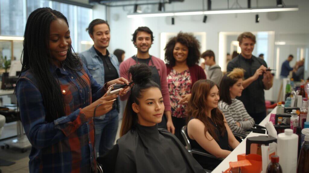 - Formations internes : Organisez des ateliers pratiques (ex : coupes de base, colorations) avec vos employés expérimentés.