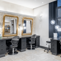 Espace Artistique Baroque : Laissez libre cours à votre créativité dans un cadre artistique et baroque, où nos stylistes peuvent exprimer leur talent à travers des créations audacieuses et originales. Les miroirs dorés et décalés ajoutent une touche de glamour à cet espace inspirant.