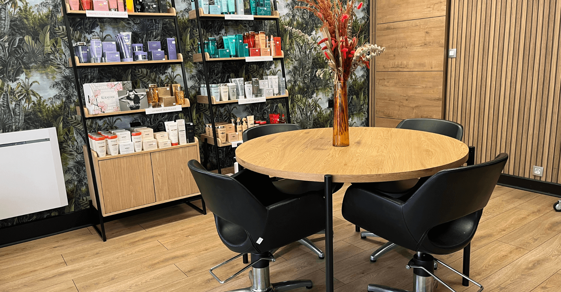 Nous sommes spécialisés dans les soins cheveux de haute qualité, avec des marques comme KERASTASE, Global Keratin ou encore Métal Détox. Nos clients sont accueillis dans un cadre chaleureux et convivial, où les notes boisées et fleuries créent une ambiance agréable. Chez nous, l’expérience client est millimétrée, avec des diagnostics précis, des bacs massants, des massages crâniens, des boissons chaudes et des petits chocolats.